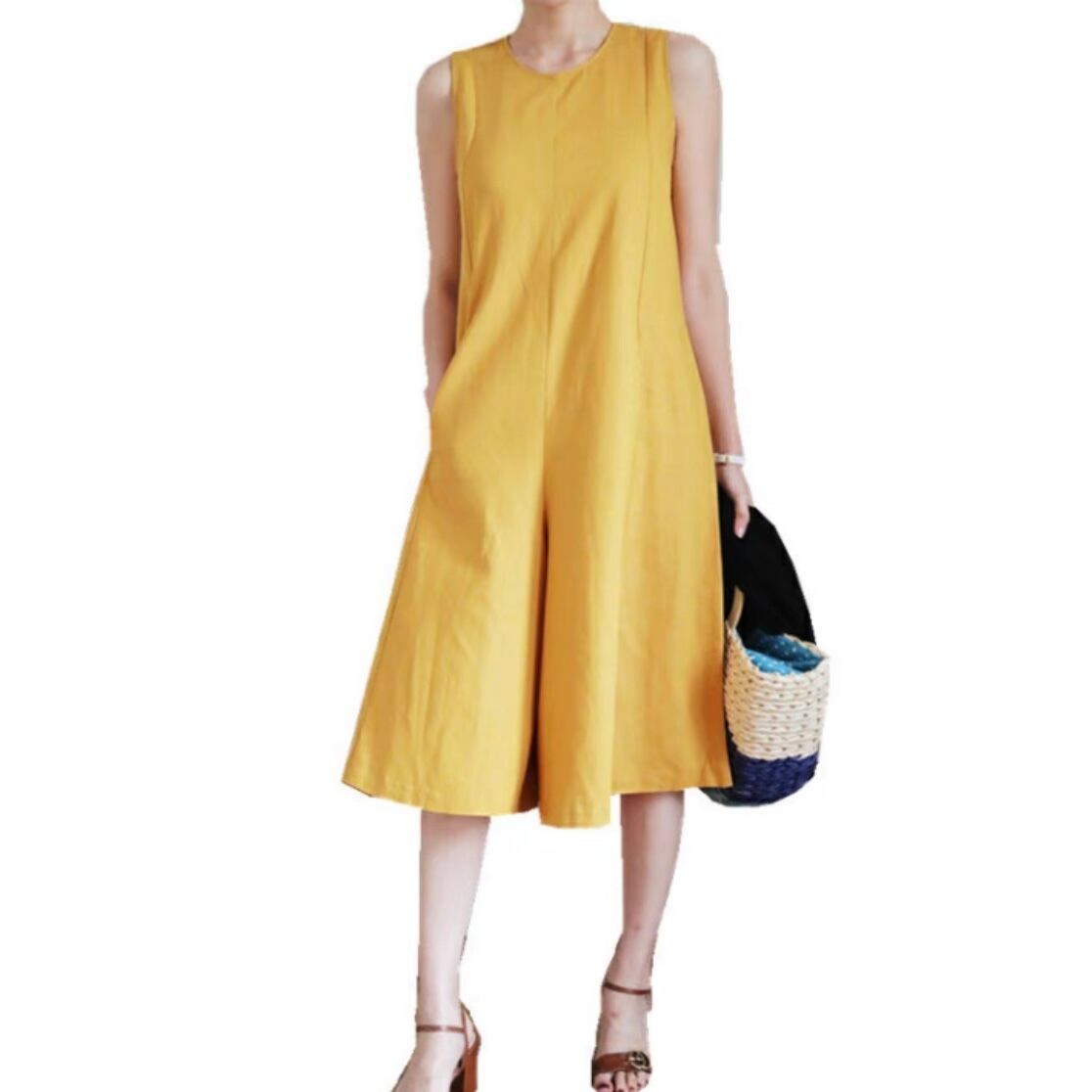 サロペット ボトムス パンツ オールインワン ストレートパンツ ガウチョパンツ 膝丈 ひざ丈 袖なし ノースリーブ Uネック ラウンドネック 重ね着 ストレート 綿麻 綿 コットン 麻 リネン ワイド ガウチョ Iライン かわいい 大人可愛い きれいめ シンプル カジュアル 大人 大人カジュアル 上品 おしゃれ お洒落 大人女子 こなれ感 モダン 無地 柄 春 夏 秋 冬 オールシーズン S M L XL サイズ展開 デート お出かけ 公園デビュー 女子会 休日 着回し 普段使い 韓国 カラー 大人コーデ