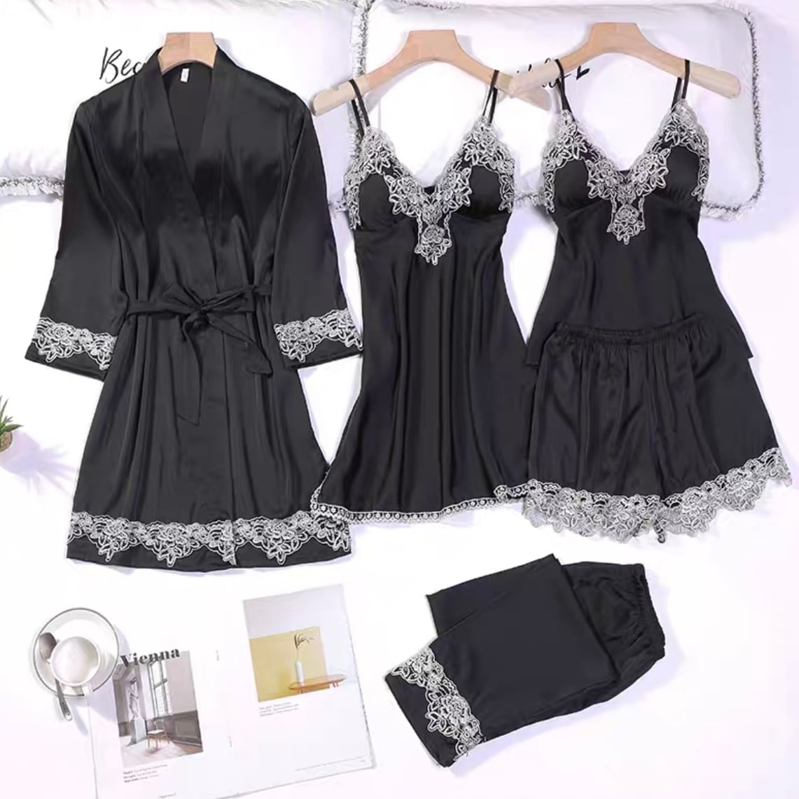 セットアップ 韓国風 ナイトウェア ルームウェア さらっと 部屋着 パジャマ ボトムス パンツ ズボン 柔らか 気持ちい 防寒 袖あり 長袖 レース付 大きめ Vネック 前開き 上下セット 5点セット ファイブピース 可愛らしい シンプル カジュアル エキゾチック エロ 上品 おしゃれ お洒落 大人女子 セクシー クール 色気 無地 春 夏 秋 冬 リラックス リラクシー ペア お揃い 双子 女子会 韓国 韓国系 スタイル M L XL サイズ展開 大きいサイズ 大きい 大きめ ぽっちゃり 大人カラー