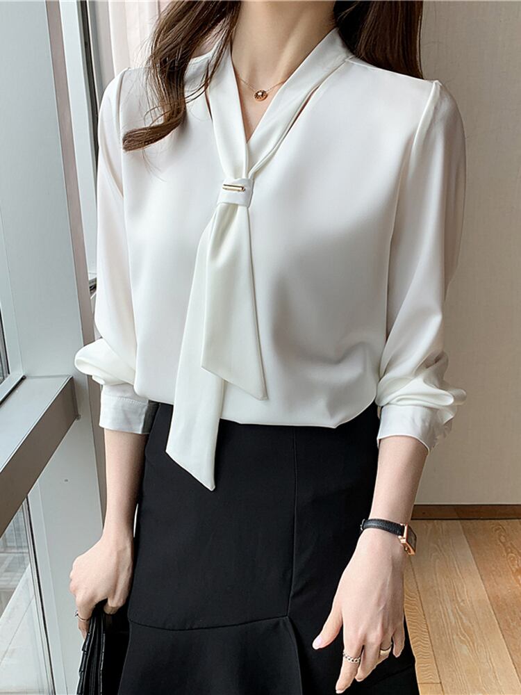 ボウタイリボン 長袖 シフォン シャツブラウス レディース トップス シャツ ブラウス プルオーバー Vネック 襟なし ボウタイ りぼんタイ かわいい 大人可愛い きれいめ シンプル カジュアル 上品 おしゃれ こなれ感 エレガント フォーマル 無地 春 秋 冬 授業参観 ママ オフィス OL 通勤 学生 学校 通学 デート お出かけ 旅行 公園 女子会 休日 ショッピング 普段使い 着回し S M L XL 2XL 大きいサイズ ゆったり 白 ホワイト くすみ 大人カラー グレーブルー ダスティーピンク
