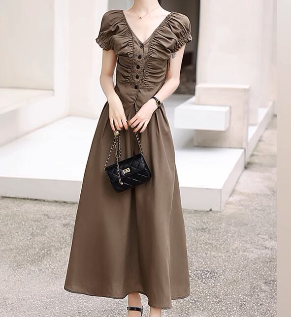 フェミニンな雰囲気漂うレディース ワンピース ブラウス セットアップ!Vネックデザインが顔周りをすっきり見せ、セミフレアのラインが優雅に揺れ動きます。ウエストマークでスタイルアップ効果抜群。薄手のコットン素材が春夏にぴったりな一着です。
