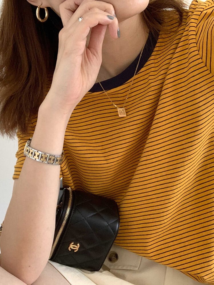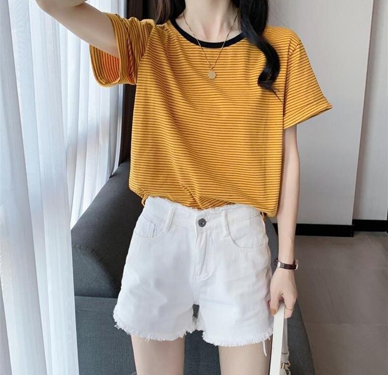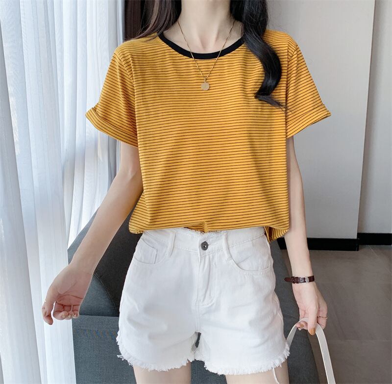 ボーダー柄 半袖 Tシャツ レディース トップス カットソー プルオーバー ラウンドネック 襟なし かわいい 大人可愛い きれいめ シンプル カジュアル おしゃれ こなれ感 ルーズ 存在感 ボーダー 春 夏 秋 ママ 通勤 学生 学校 通学 デート お出かけ 旅行 公園 女子会 休日 ショッピング カフェ 重ね着 韓国 オルチャン 普段使い 着回し レイヤード ロールアップ S M L XL 黒 ブラック 黄色 イエロー