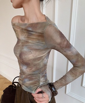 タイダイ柄をあしらったこのトップスは、ウエスト部分のギャザーが女性らしいシルエットを強調し、シンプルながらも存在感抜群の一着です。様々な着方によってデコルテ周りの印象を変えてくれるのでより一層おしゃれを楽しむことができます。デートやお出かけ、お泊まり、旅行など、さまざまなシーンでスタイリッシュにキメることができます。