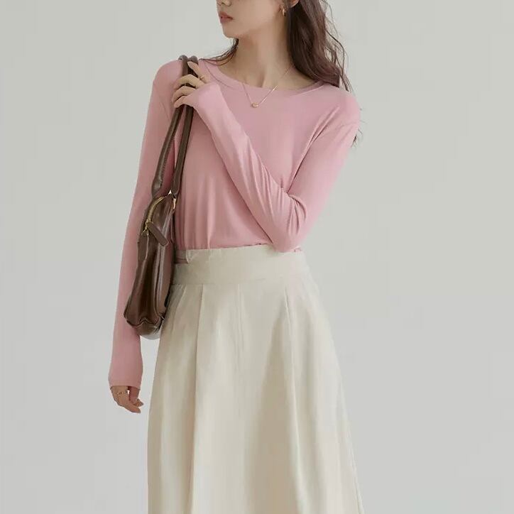 レディース トップス カットソー ミディアム 長袖 Uネック ラウンドネック タイト スリム 細身 ストレート 大人可愛い きれいめ シンプル カジュアル 上品 おしゃれ かっこいい こなれ感 ラフ クール エレガント フォーマル 都会的 クラシカル ベーシック ナチュラル 無地 春 秋 冬 ロングシーズン オフィス ビジネス OL デート 女子会 休日 高原 ホテル ガーデン 重ね着 韓国 オルチャン 楽ちん 普段使い 着回し モテ 清楚 トレンド 流行 定番 フリーサイズ ベーシックカラー 大人カラー