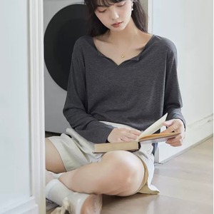 トップス 韓国風 オルチャン カットソー Tシャツ 袖あり 長袖 萌え袖 Vネック スキッパー ストレート 襟なし 大人可愛い 綺麗め きれいめ シンプル カジュアル 大人カジュアル 大人 上品 おしゃれ お洒落 かっこいい 大人女子 こなれ感 ラフ クール セクシー スタイリッシュ 春 夏 秋 ロングシーズン お出かけ デート 公園デビュー 休日 普段使い デイリー ヘビロテ 韓国 韓国系 定番 ワンサイズ フリーサイズ Fサイズ ブラック 大人カラー パステルカラー ゆったり ゆるっと 柔らかい