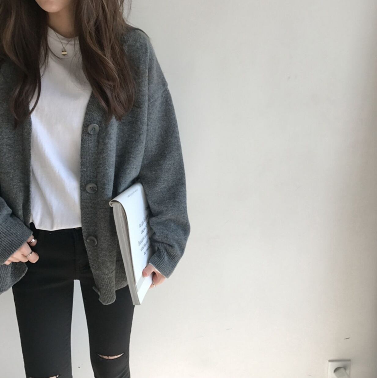 大きめボタンが印象的なVネックニットカーディガンは、シンプルでありながらも大人可愛いスタイルを演出します!ドロップショルダーのデザインがルーズ感をプラスし、普段使いやデート、お出かけなど様々なシーンで活躍すること間違いなしです。