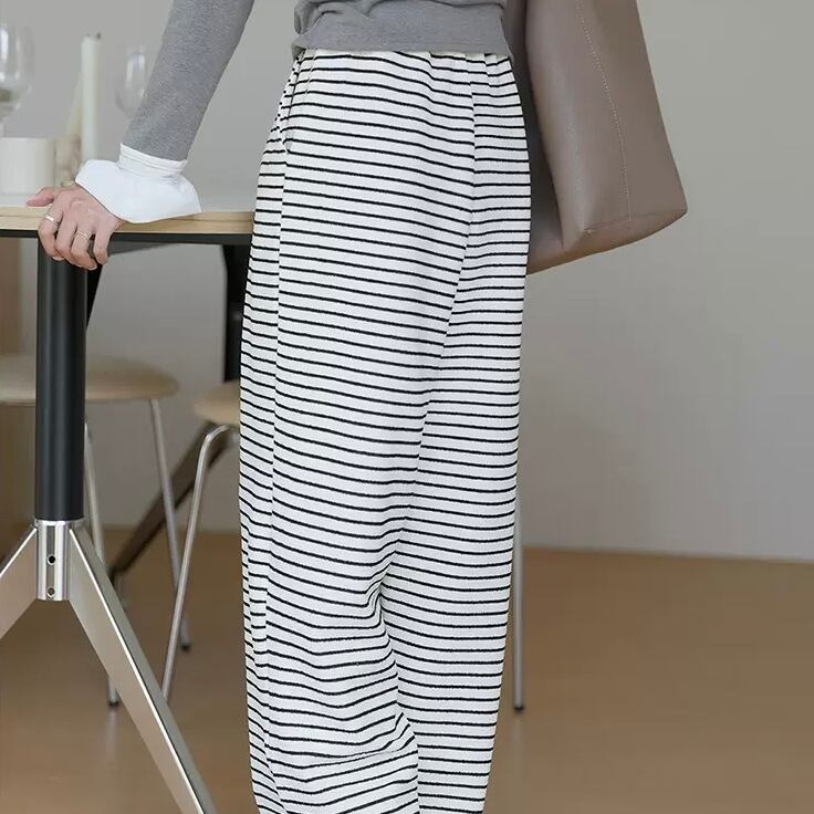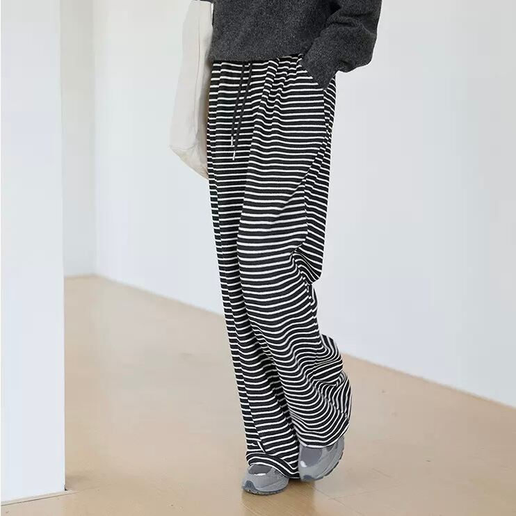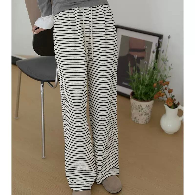 パンツ 韓国風 オルチャン 定番 ボーダー レトロ リラックスパンツ ズボン ストレートパンツ コットン ポリエステル ストレート かわいい 大人可愛い きれいめ シンプル カジュアル 大人カジュアル 大人 上品 おしゃれ お洒落 かっこいい クール 大人女子 こなれ感 ラフ 部屋着 パジャマ ナイトウェア ルームウェア 動きやすい 春 夏 秋 ロングシーズン ワンサイズ フリーサイズ お出かけ 公園デビュー 女子会 休日 着回し デイリー 普段使い お揃い 双子 韓国 韓国系 ファッション スタイル
