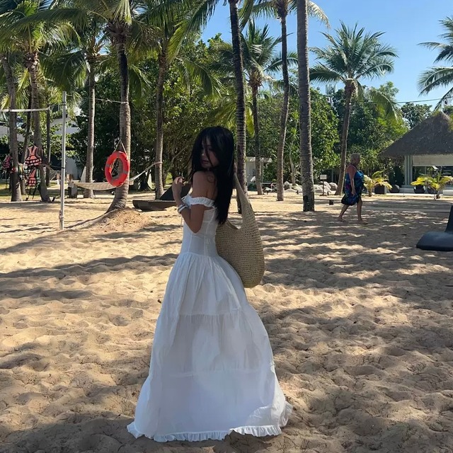 リゾートやビーチにぴったりなロング丈とひらひらのシルエットが魅力的。