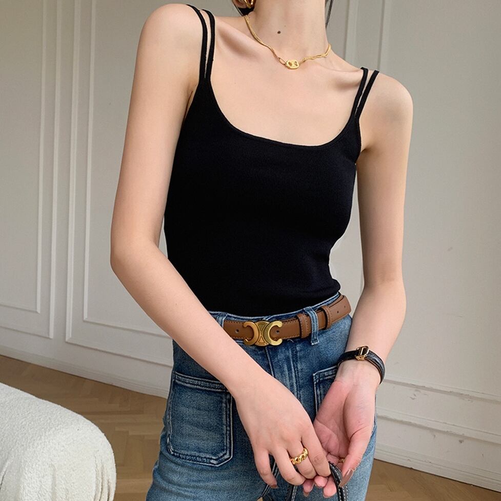ダブルストラップタンクトップ タイトキャミソール レディース トップス インナー キャミソール シャツ カットソー タンクトップ ミニ ショート クロップド丈 ノースリーブ 袖なし スマート スリム 細身 タイト かわいい 大人可愛い きれいめ シンプル カジュアル おしゃれ かっこいい エキゾチック こなれ感 ラフ マニッシュ ガーリー クール エレガント 無地 春 夏 デート お出かけ アウトドア キャンプ イベント リゾート 旅行 海 プール ビーチ 休日 ショッピング コンサート ライブ
