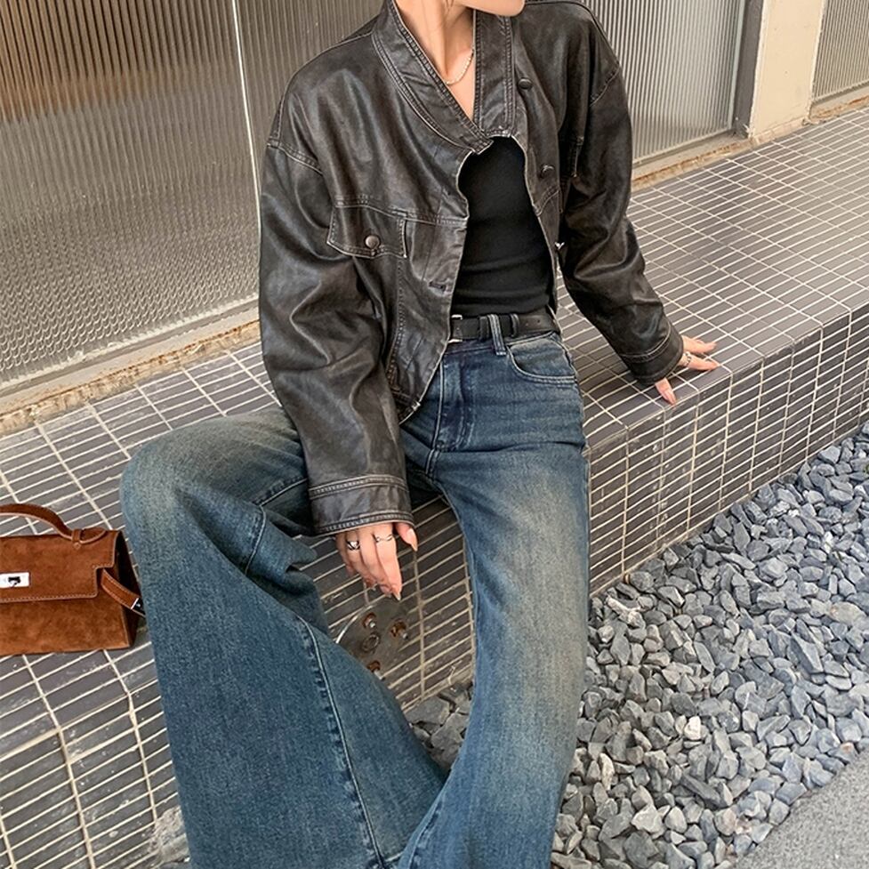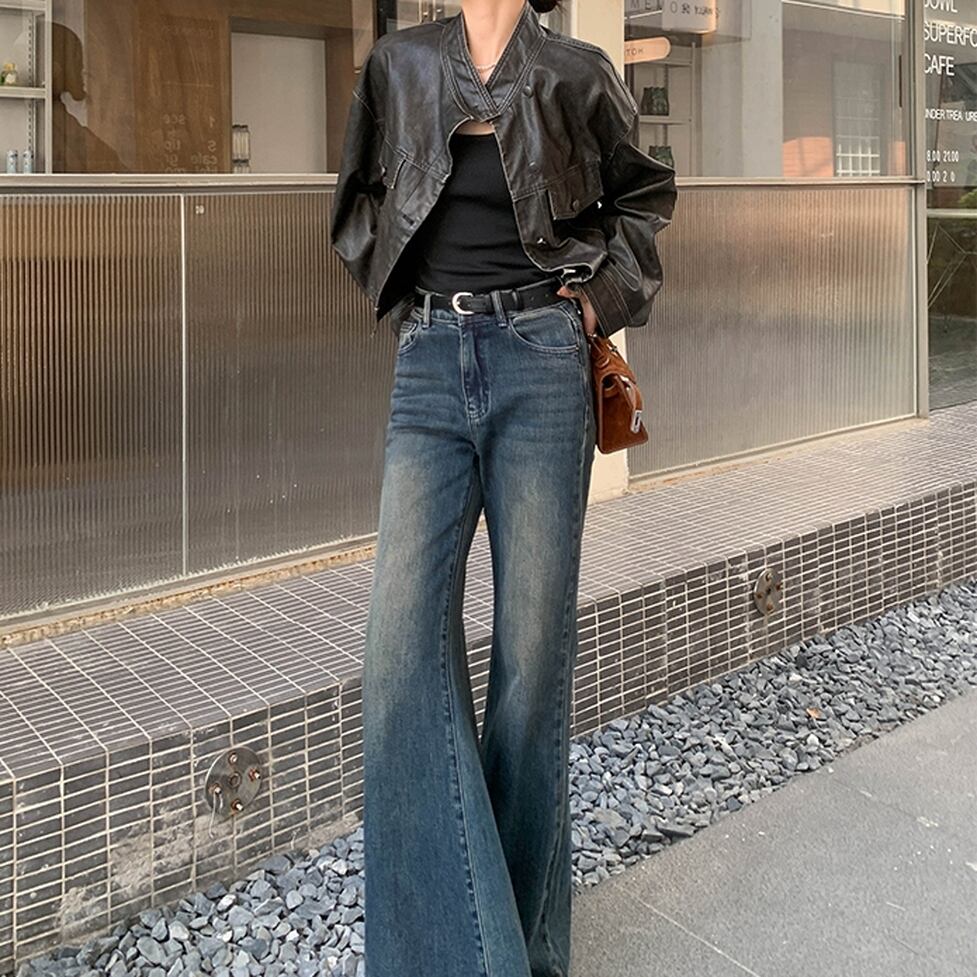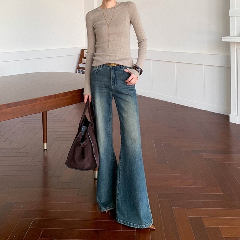 ウォッシュ加工がかっこいい大人のダークデニム。裾が広がるブーツカットで脚を長く印象付けます。トップスはタイトなものからゆるっとしたルーズなものまで様になるアイテムです