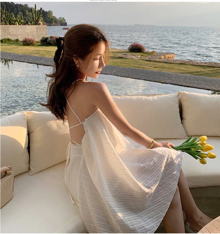 レディース ワンピース ミニ ミニワンピース 袖なし ノースリーブ ホルターネック フレア Aライン 背中開き バッククロス フェミニン リボン 透け感 かわいい 大人可愛い きれいめ シンプル カジュアル 上品 おしゃれ こなれ感 ガーリー 存在感 抜け感 ラブリー キュート ナチュラル ストライプ 春 夏 デート お出かけ お泊まり リゾート 旅行 海 ビーチ 公園 女子会 休日 バカンス 高原 ガーデン ショッピング 体型カバー 普段使い 着回し モテ 清楚 S M L ゆったり 白 ホワイト