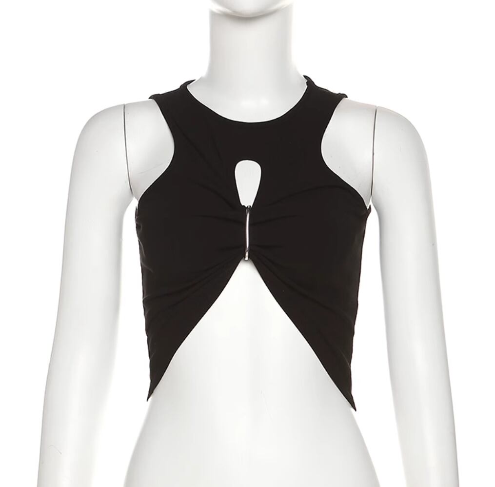 大人可愛いデザインのタンクトップが登場しました!クロップド丈で、バストまわりのデザインとアクセサリーが個性的な印象を与えながら美しいシルエットも叶えてくれる1着です。シンプルでどんなコーディネートにもマッチしてくれます。