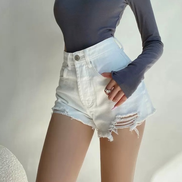 パンツ ボトムス デニム ダメージ ショートデニム ショーパン ショートパンツ デニムパンツ ミニ ショート タイト スリム 細身 へそ出し ファスナー ポケット ハイウエスト ボタン アメカジ 大人可愛い きれいめ シンプル カジュアル 上品 おしゃれ かっこいい エキゾチック こなれ感 ラフ メンズライク クール モード系 都会的 ワイルド セクシー 無地 春 夏 秋 冬 オールシーズン ロングシーズン シーズンレス アウトドア キャンプ リゾート 旅行 海 プール ビーチ バカンス 美脚 脚長