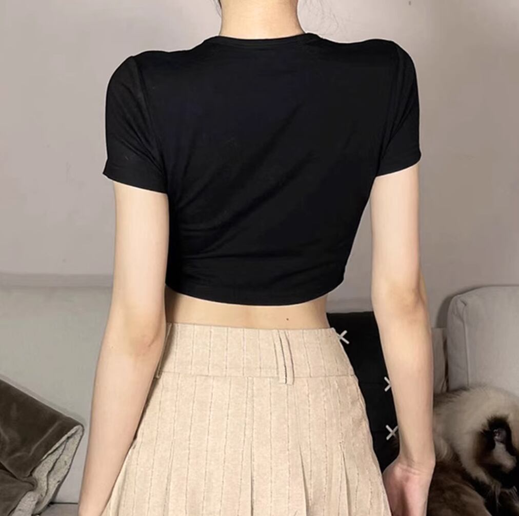 レディース トップス カットソー Tシャツ ミニ ショート クロップド丈 半袖 ラウンドネック 襟なし ノーカラー タイト スリム 細身 へそ出し かわいい 大人可愛い シンプル カジュアル おしゃれ こなれ感 存在感 都会的 アクティブ ナチュラル ロゴ 夏 ママ 学生 学校 通学 デート お出かけ 旅行 公園 休日 ショッピング カフェ フェス モノトーン 韓国 オルチャン コーデ 楽ちん 脚長 普段使い 着回し レイヤード モテ トレンド 流行 インスタ映え 定番 S M L 黒 ブラック