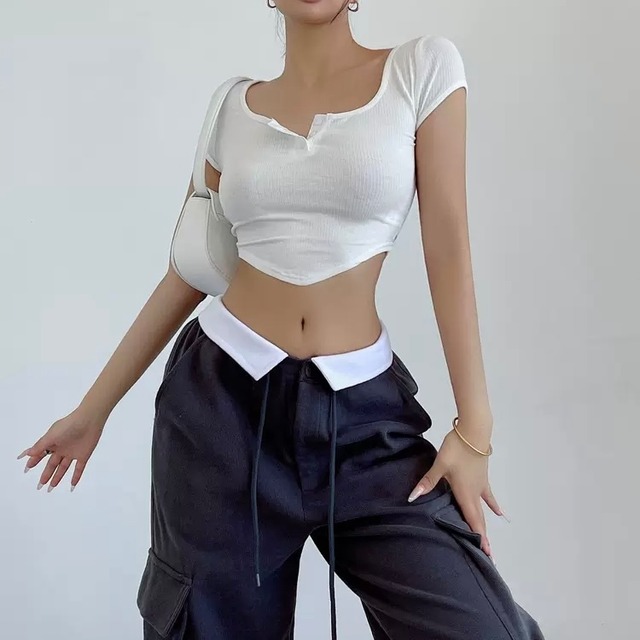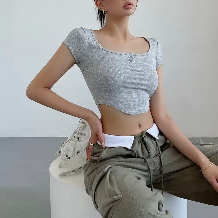 レディース トップス カットソー ミニ ショート 半袖 フレンチスリーブ スクエアネック タイト スリム 細身 へそ出し ボタン アメカジ 大人可愛い きれいめ シンプル カジュアル 上品 おしゃれ かっこいい エキゾチック 個性的 クール エレガント 都会的 アメリカン ワイルド セクシー 無地 春 夏 ロングシーズン デート お出かけ パーティー イベント リゾート 旅行 海 プール ビーチ 休日 バカンス お揃い 双子 韓国 着回し モテ トレンド 流行 S M ベーシックカラー 大人カラー