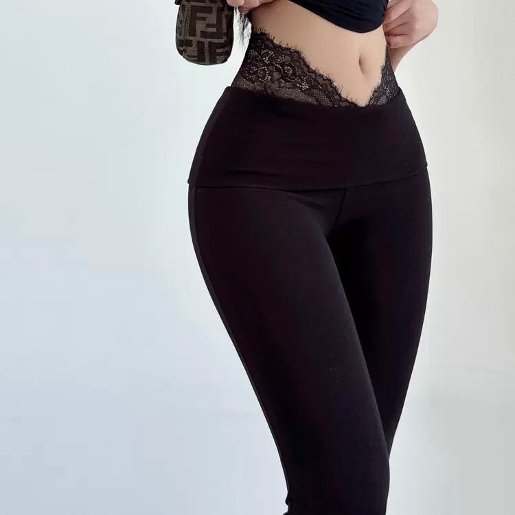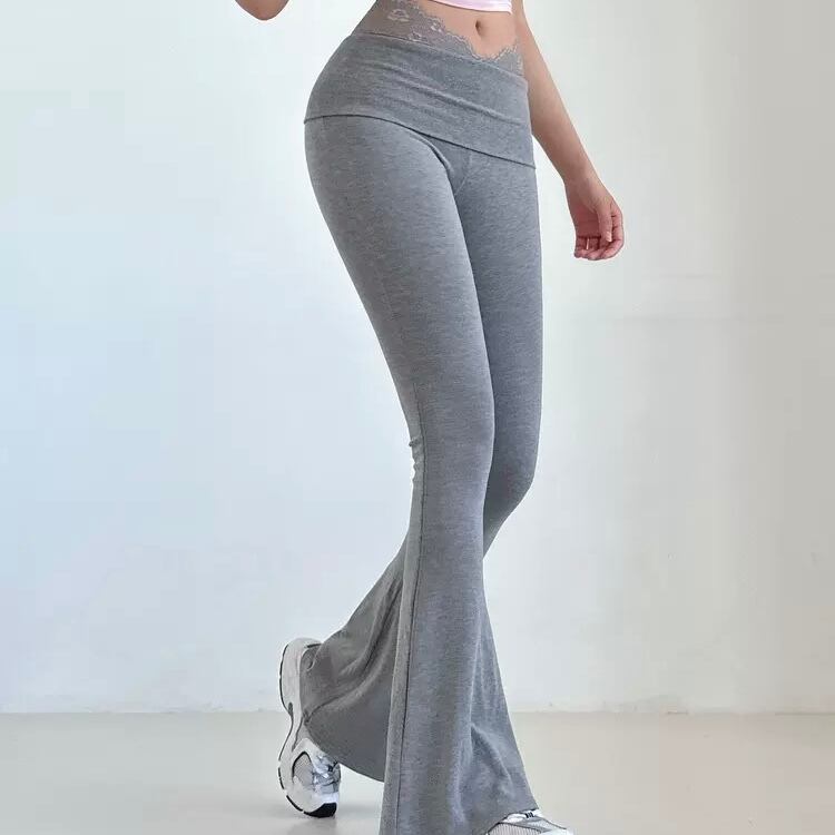 大人可愛いレース付きリラックスパンツ。
