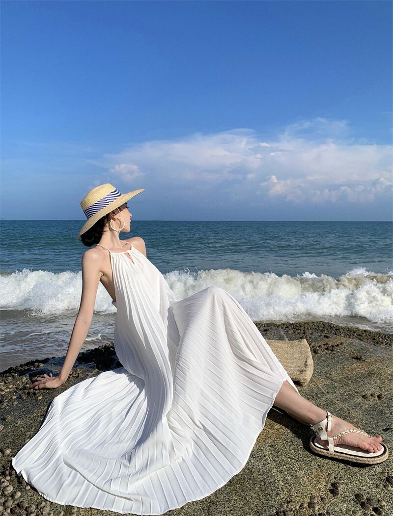 レディース ワンピース ロング プリーツワンピース 袖なし ノースリーブ ホルターネック Aライン 背中開き バックシャン フェミニン プリーツ かわいい 大人可愛い きれいめ シンプル カジュアル 上品 おしゃれ こなれ感 ガーリー エレガント 抜け感 ラブリー キュート ナチュラル 無地 春 夏 デート お出かけ お泊まり リゾート 旅行 海 ビーチ 公園 女子会 休日 バカンス 高原 ガーデン ショッピング 体型カバー 普段使い 着回し モテ 清楚 S M L ゆったり 白 ホワイト