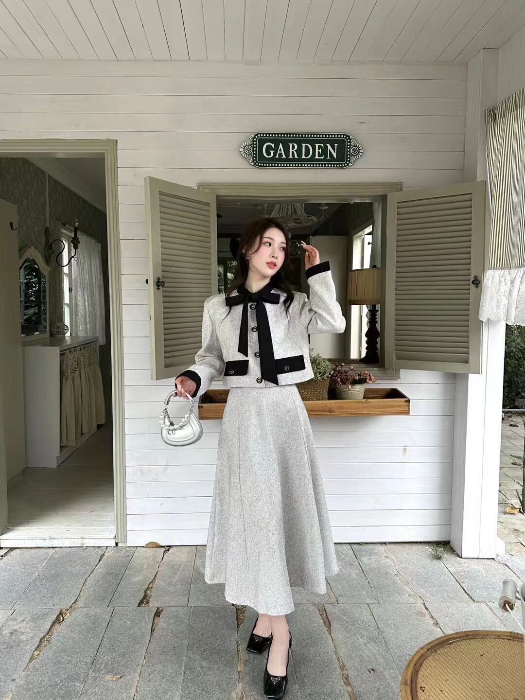 2セット レディース スカート ジャケット ボトムス セットアップ 羽織 前開き ショート ミモレ ロング 長袖 りぼんタイ フレア Aライン フェミニン リボン ポケット ボタン かわいい 大人可愛い きれいめ シンプル カジュアル 上品 おしゃれ こなれ感 フォーマル 抜け感 無地 春 秋 入学式 入園式 卒業式 卒園式 謝恩会 発表会 授業参観 オフィス ビジネス OL 通勤 デート お出かけ 女子会 コーデ 普段使い 着回し S M L XL ゆったり 黒 ブラック ライトグレー ダークグレー