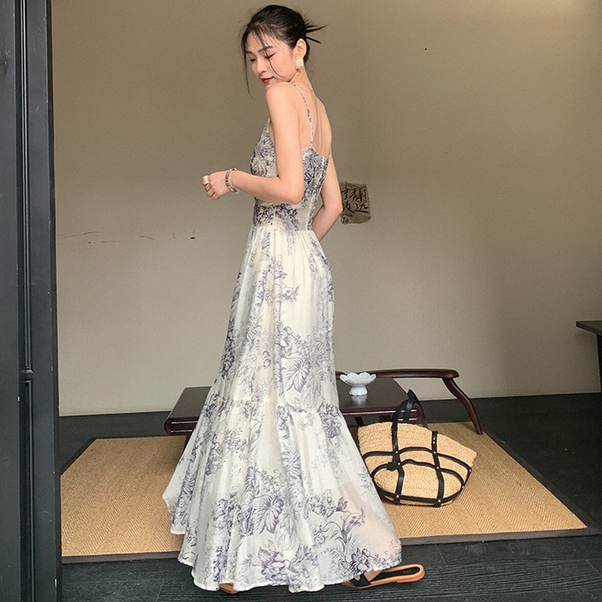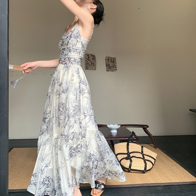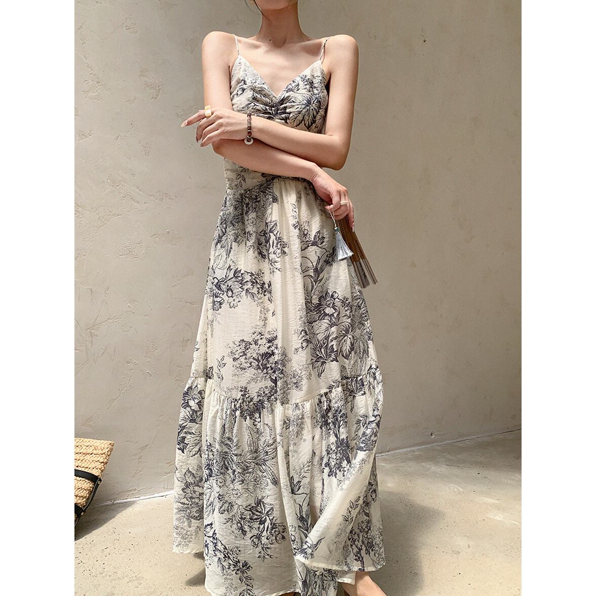 総柄ギャザーワンピース 総柄ロングワンピース レディース ワンピース ドレス ドレスワンピース ワンピドレス キャミソール ロング ノースリーブ 袖なし Vネック スマート スリム 細身 フレア ティアード ギャザー シフォン ハイウエスト シアー かわいい 大人可愛い きれいめ 上品 おしゃれ レトロ エスニック エキゾチック こなれ感 ガーリー エレガント キュート ラグジュアリー ロマンティック 花柄 フラワー デート お出かけ パーティー イベント リゾート 休日 ショッピング フェミニン