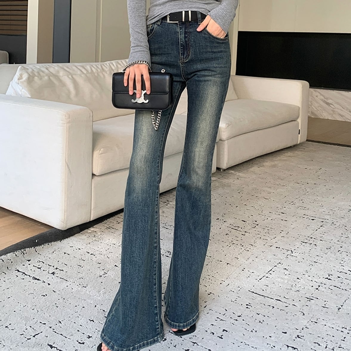 脚長シルエットを演出するかっこいいデニムパンツ。大人かわいいが叶えられて上品なハンサムスタイルが完成。存在感を引き立てるので取り入れるだけで映えるのが魅力です