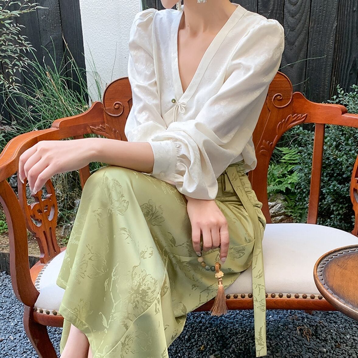 オリエンタルブラウス カシュクール刺繍ブラウス レディース トップス シャツ ブラウス ボリューム袖 長袖 Vネック カシュクール オリエンタルシャツ カシュクール刺繍シャツ 刺繍ブラウス 長袖ブラウス スマート スリム アシンメトリー シフォン かわいい 大人可愛い きれいめ カジュアル 上品 おしゃれ レトロ アジアン エスニック エキゾチック こなれ感 ガーリー 個性的 クール エレガント キュート ラグジュアリー インスタ映え フェミニン