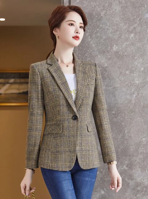 レディース トップス ジャケット 上着 羽織 前開き テーラードジャケット 長袖 襟付き タイト スリム ストレート ポケット コンサバ ボタン 大人可愛い きれいめ カジュアル 上品 おしゃれ レトロ 個性的 存在感 フォーマル 都会的 クラシカル ロマンティック チェック 格子柄 秋 冬 授業参観 会議 MTG ミーティング プレゼン ママ オフィス ビジネス OL 通勤 韓国 オルチャン コーデ 体型カバー 脚長 S M L XL 2XL 3XL 4XL ブラウン