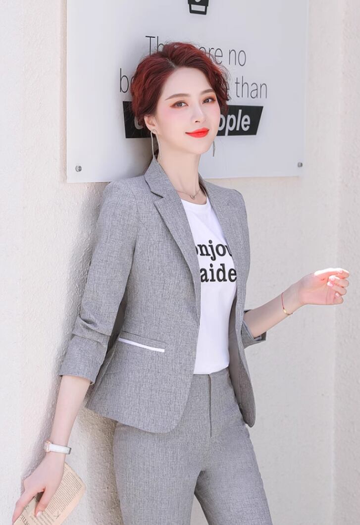 エレガントなジャケットとパンツのセットアップのご紹介!上質なテーラードジャケットにアンクル丈のスラックスが組み合わさったこちらのアイテムは、フォーマルなシーンからビジネスシーンまで幅広く対応可能。きれいめのデザインで、シンプルながらも洗練された印象を与えます。春や秋の季節にぴったりの一着です!