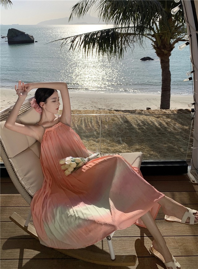レディース ワンピース ミモレ ロング プリーツワンピース 袖なし ノースリーブ チェーンストラップ Aライン フェミニン プリーツ ギャザー かわいい 大人可愛い きれいめ シンプル カジュアル 上品 おしゃれ こなれ感 ガーリー 存在感 抜け感 ラブリー キュート ナチュラル エレガント グラデーション 春 夏 デート お出かけ お泊まり リゾート 旅行 海 ビーチ 公園 女子会 休日 バカンス 高原 ガーデン ショッピング 体型カバー 普段使い 着回し モテ 清楚 S M L ゆったり ピンク