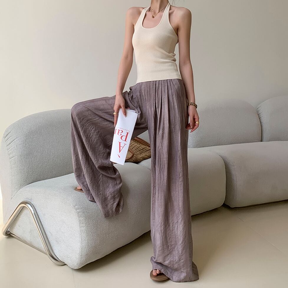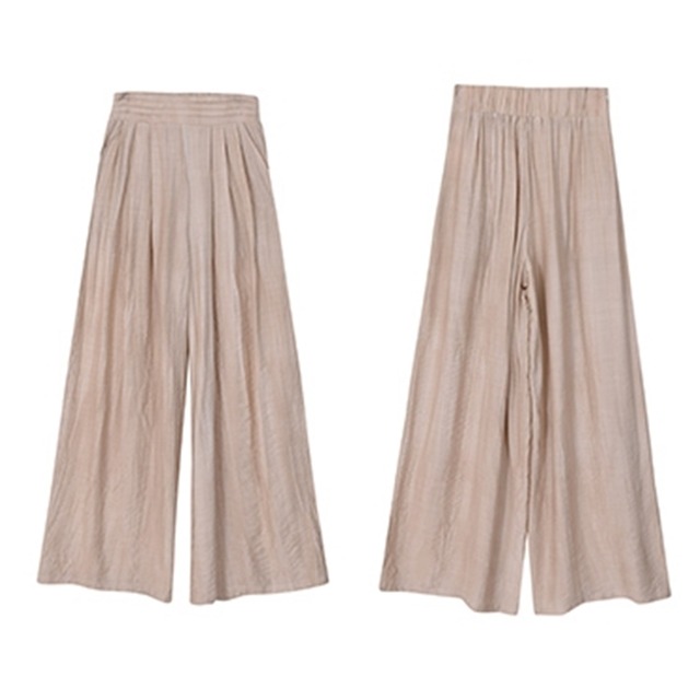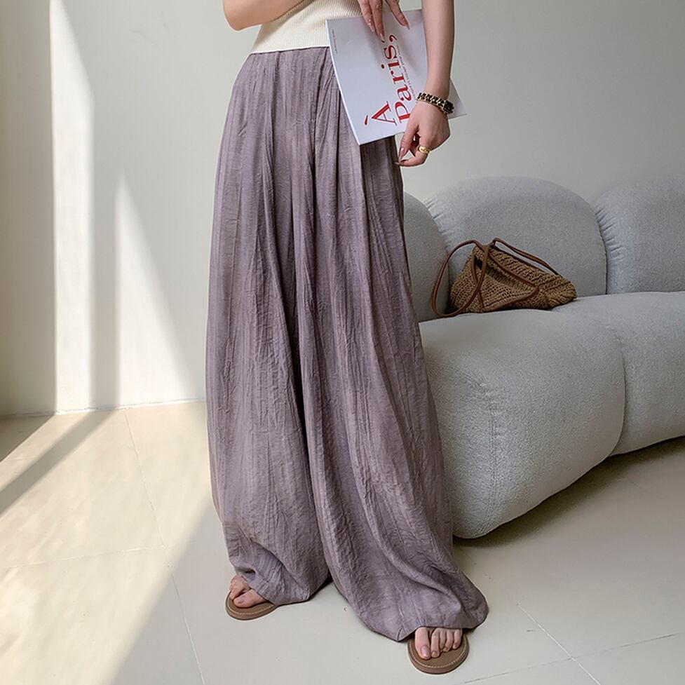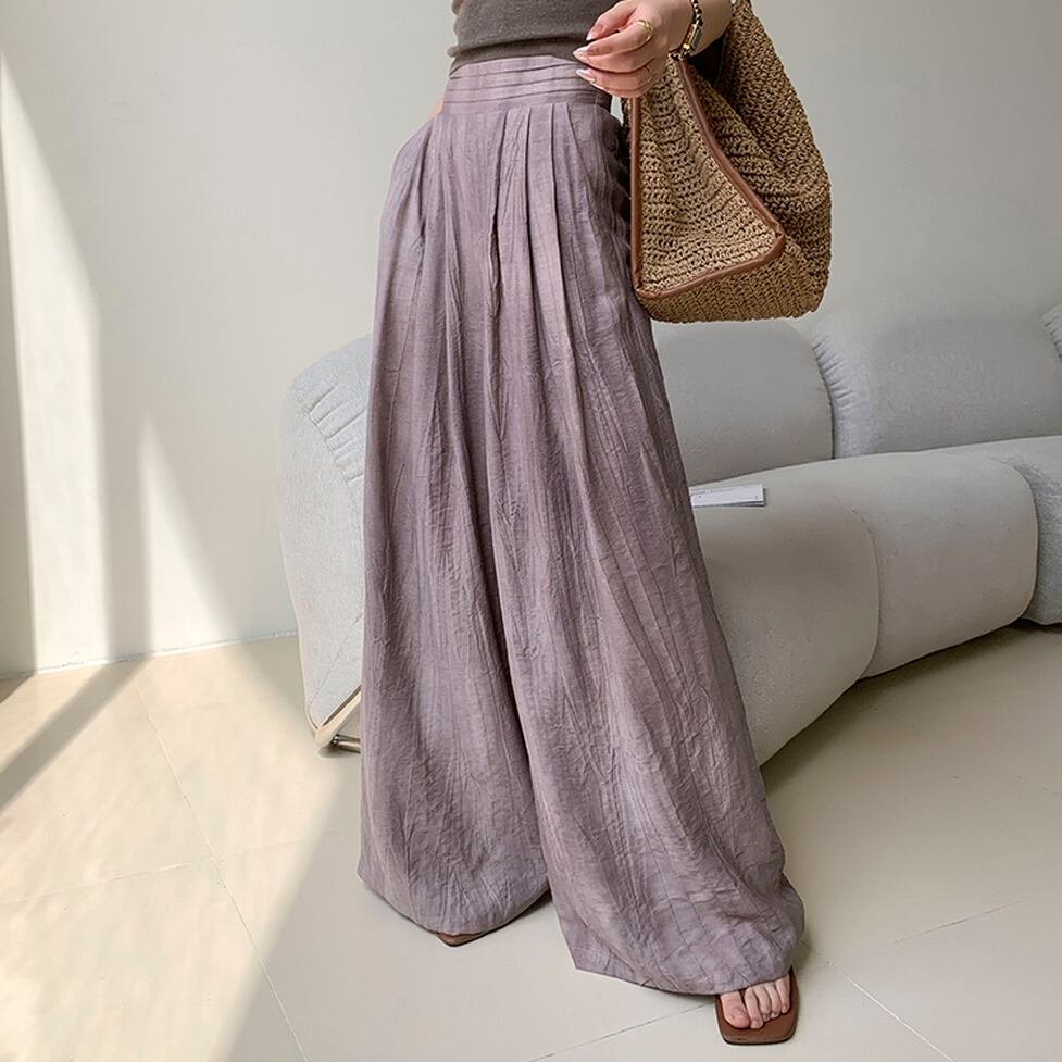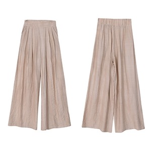 タックとプリーツのシワ加工が存在感を引き出すワイドパンツです。きちんと感と品格を増幅し気分転換を図れます。軽さをつくると同時に凜とする女性らしさもキープ。単純なスタイリングにひねりを加えワードローブを活性化させる効果的なアイテムです