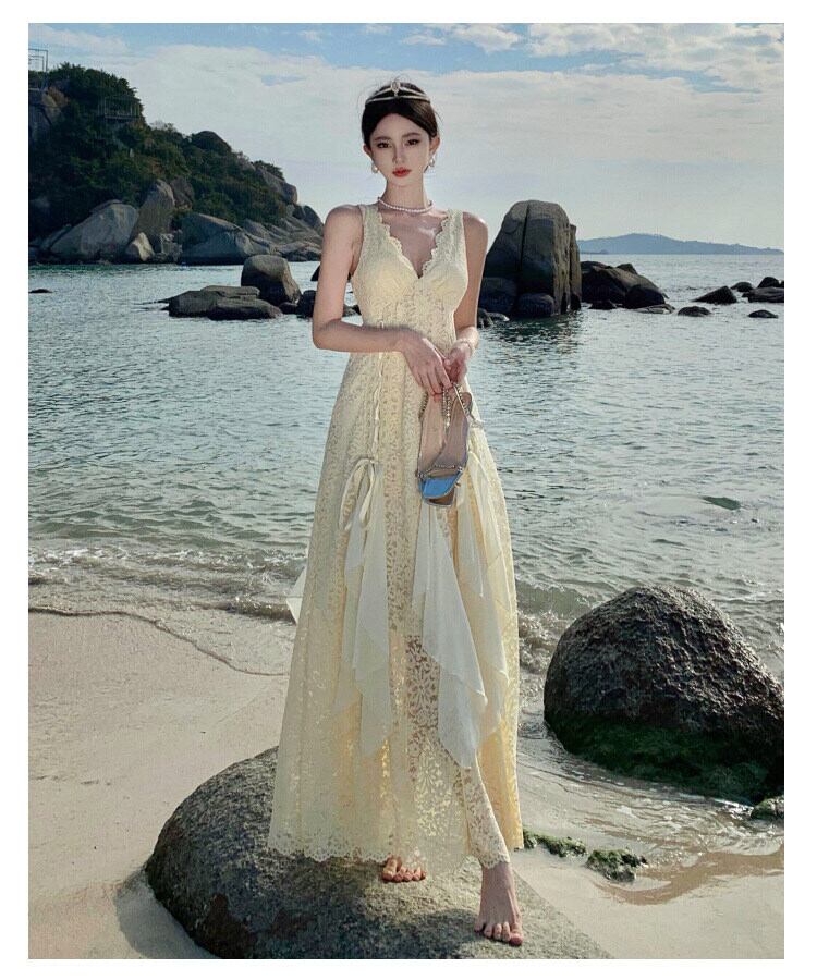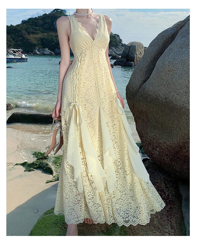 レディース ワンピース ドレス ロング マキシ 袖なし ノースリーブ Vネック フレア Aライン 切り替え 背中開き フェミニン レース フリル リボン バックコンシャス レースアップ 透け感 かわいい 大人可愛い きれいめ シンプル 上品 おしゃれ こなれ感 ガーリー エレガント 主役級 存在感 こなれ感 ラブリー キュート プリンセス ロマンティック 花柄 フラワー 春 夏 デート お出かけ お泊まり パーティー イベント リゾート 旅行 海 ビーチ 女子会 休日 バカンス S M L XL ベージュ