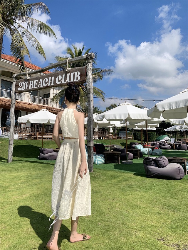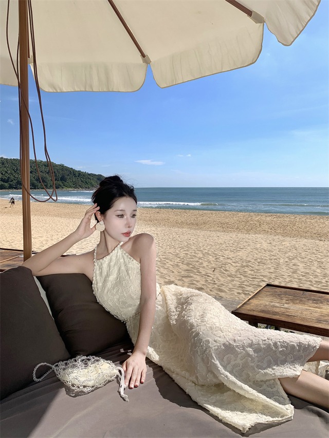 ノースリーブ&ホルターネックデザインで涼しげな印象を与え、春夏のお出かけに最適です。
