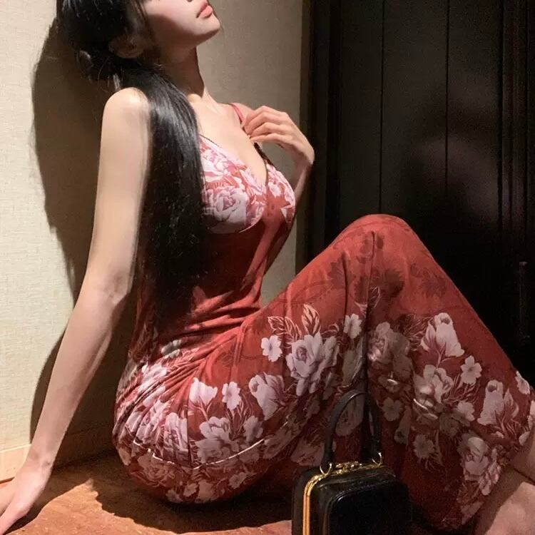 ワンピース 韓国風 タイトワンピース 花柄 フラワー 細めストラップ ドレス ワンピ ストラップ ロング ロング丈 ノースリーブ Vネック スリム タイト 細身 ストレート Iライン きれい きれいめ シンプル カジュアル 大人 上品 おしゃれ お洒落 かっこいい 大人女子 セクシー クール スタイリッシュ スタイルアップ 美尻 美ライン 曲線美 くびれ モダン 春 夏 秋 ロングシーズン レディース デート お出かけ 女子会 休日 韓国系 オルチャン ファッション スタイル モテ 美脚 脚長 大人カラー