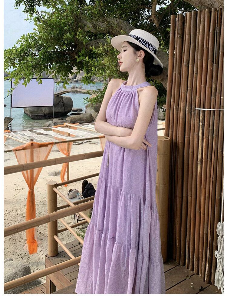 レディース ワンピース ティアード ロング 袖なし ノースリーブ ホルターネック フレア Aライン フェミニン リボン 透け感 ギャザー かわいい 大人可愛い きれいめ シンプル カジュアル 上品 おしゃれ かっこいい エキゾチック こなれ感 ガーリー エレガント 存在感 抜け感 ラブリー キュート 花柄 フラワー 春 夏 デート お出かけ お泊まり リゾート 旅行 海 公園 女子会 休日 バカンス 高原 ガーデン ショッピング 普段使い 着回し モテ 清楚 S M L XL ゆったり 紫 パープル