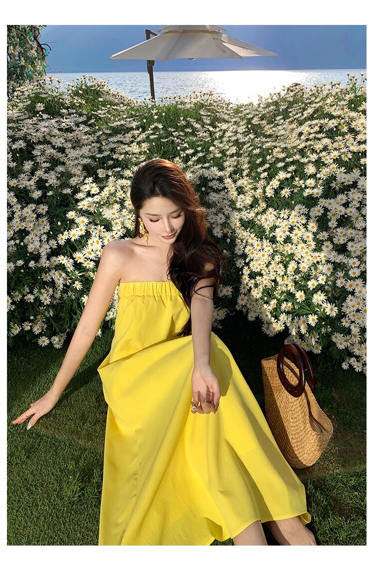 レディース ワンピース ロング チューブトップワンピース ベアトップ 袖なし ノースリーブ Aライン 背中開き フェミニン バックコンシャス かわいい 大人可愛い きれいめ シンプル カジュアル 上品 おしゃれ エキゾチック こなれ感 ガーリー エレガント 存在感 抜け感 ラブリー キュート セクシー 無地 春 夏 デート お出かけ お泊まり リゾート 旅行 海 ビーチ 公園 女子会 休日 バカンス 高原 ガーデン ショッピング 普段使い 着回し モテ 清楚 S M L ゆったり 黄色 イエロー