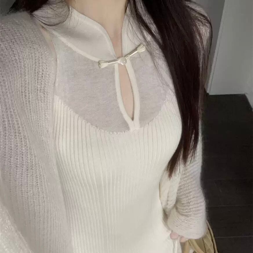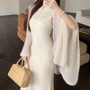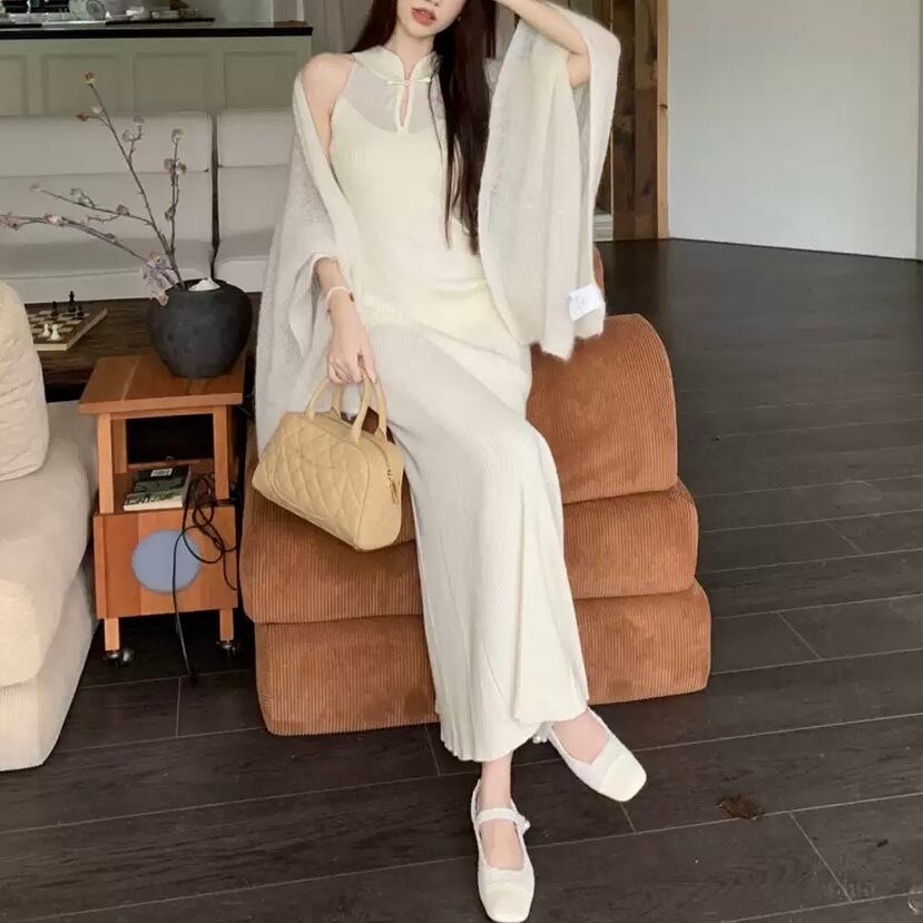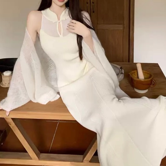 ロングシーズン着用可能な中華風タイトワンピース。