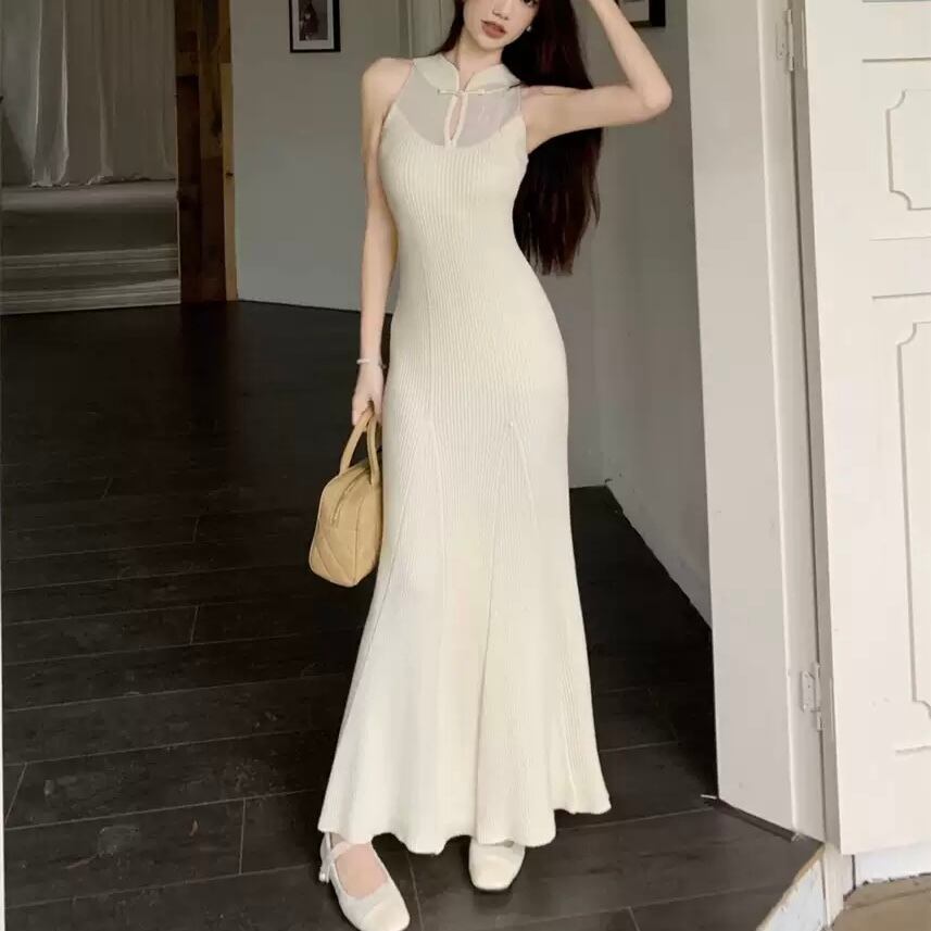 ワンピース 中華風 タイトワンピース チャイナ 異素材ミックス ドレス ワンピ ストラップ ロング ロング丈 ノースリーブ スリム タイト 細身 ストレート Iライン きれい きれいめ シンプル カジュアル 大人 上品 おしゃれ お洒落 かっこいい 大人女子 セクシー クール スタイリッシュ スタイルアップ 美尻 美ライン 曲線美 くびれ S M L サイズ展開 春 夏 秋 冬 ロングシーズン シーズンレス パーティー レディース デート お出かけ 女子会 休日 中華系 ファッション スタイル 美脚 脚長