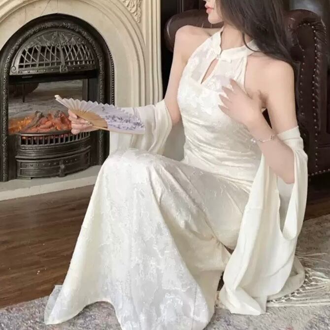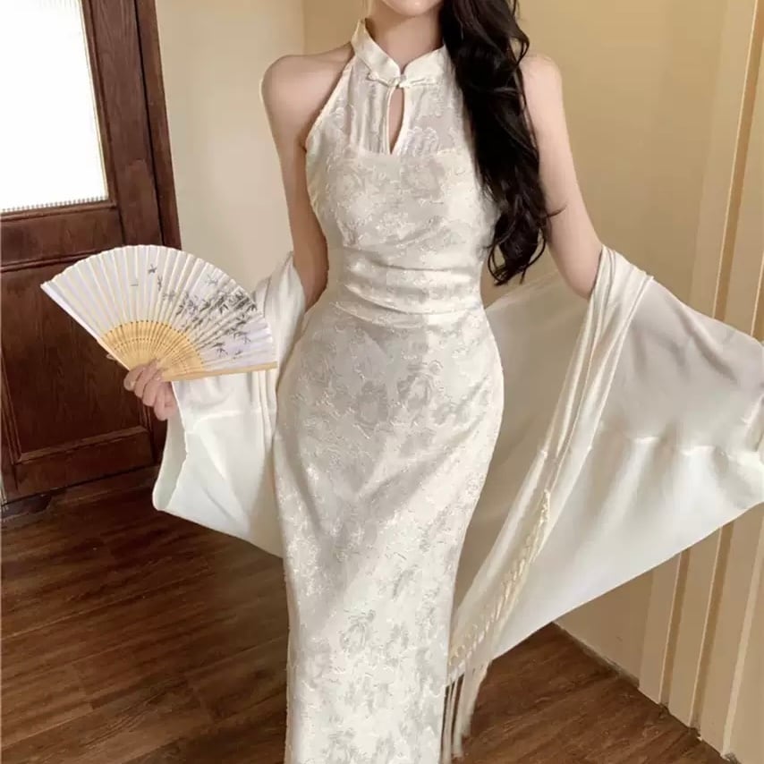 ワンピース 中華風 タイトワンピース カーディガン付き チャイナ ホルダーネック ドレス ワンピ ロング ロング丈 ノースリーブ スリム タイト 細身 ストレート Iライン きれい きれいめ シンプル カジュアル 大人 上品 おしゃれ お洒落 かっこいい 大人女子 セクシー クール スタイリッシュ スタイルアップ 美尻 美ライン 曲線美 くびれ S M L サイズ展開 春 夏 秋 冬 ロングシーズン シーズンレス パーティー レディース デート お出かけ 女子会 中華系 ファッション スタイル 美脚 脚長
