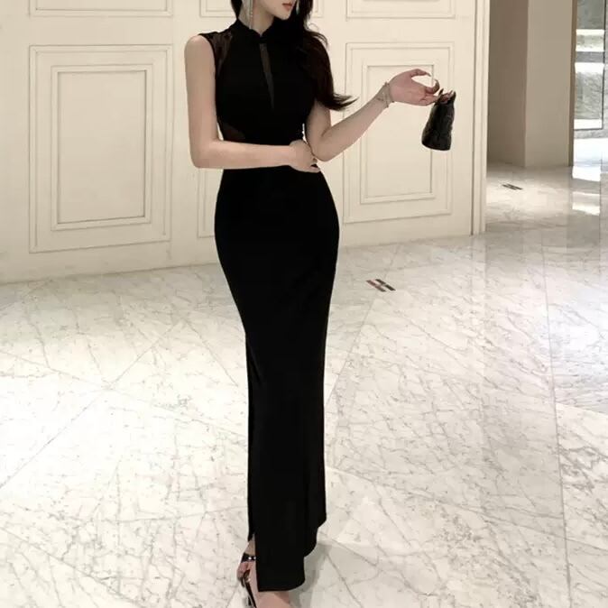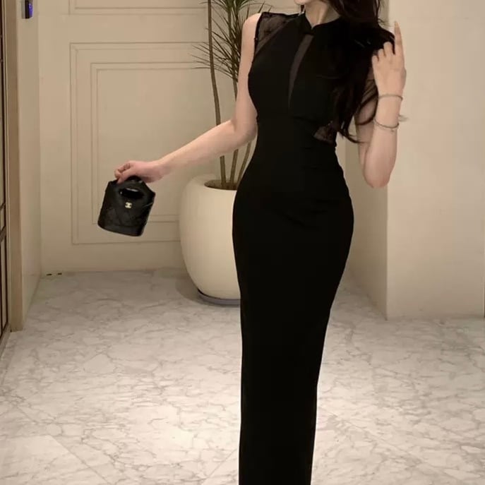 ワンピース 韓国風 タイトワンピース 異素材ミックス 透け感 シースルー ドレス ワンピ ロング ロング丈 ノースリーブ スリム タイト 細身 ストレート Iライン きれい きれいめ シンプル 大人 上品 おしゃれ お洒落 かっこいい 大人女子 セクシー クール スタイリッシュ スタイルアップ 美尻 美ライン 曲線美 くびれ S M L XL サイズ展開 春 夏 秋 冬 ロングシーズン シーズンレス オールシーズン パーティー デート お出かけ 女子会 休日 韓国 ファッション スタイル 美脚 脚長