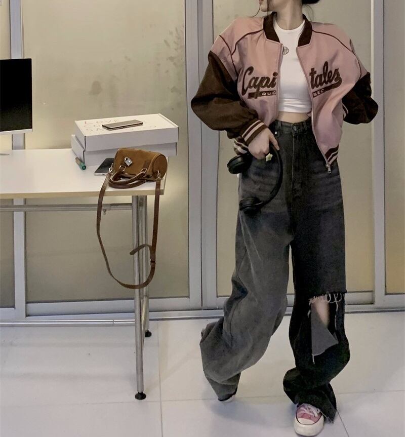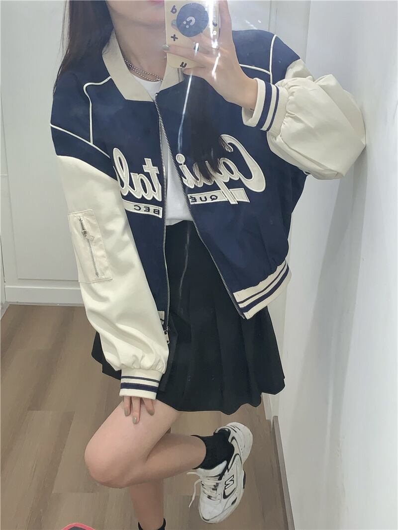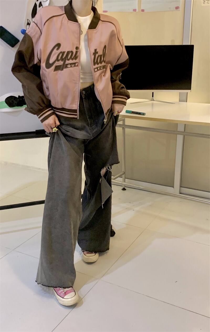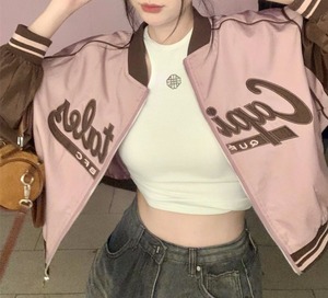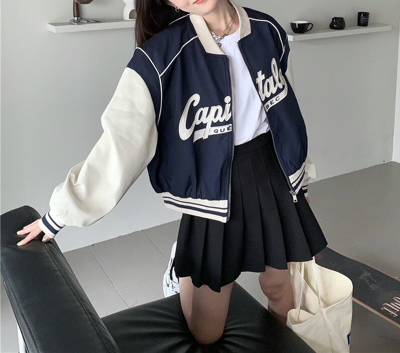 ロゴ入り 長袖 ブルゾン ジャケット レディース トップス アウター 上着 ショート ラウンドネック ストリート ファスナー ポケット 前開き かわいい 大人可愛い カジュアル おしゃれ かっこいい こなれ感 ボーイッシュ スポーティー ルーズ 個性的 クール 存在感 ロゴ 英字 春 秋 冬 ママ 通勤 学生 学校 通学 お出かけ 旅行 公園 女子会 休日 ショッピング カフェ 重ね着 体型カバー 普段使い 着回し M L XL 2XL 大きいサイズ ゆったり ネイビー くすみピンク