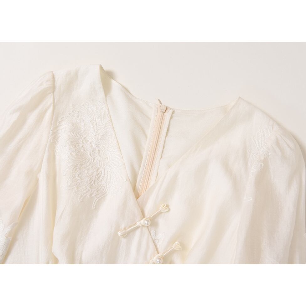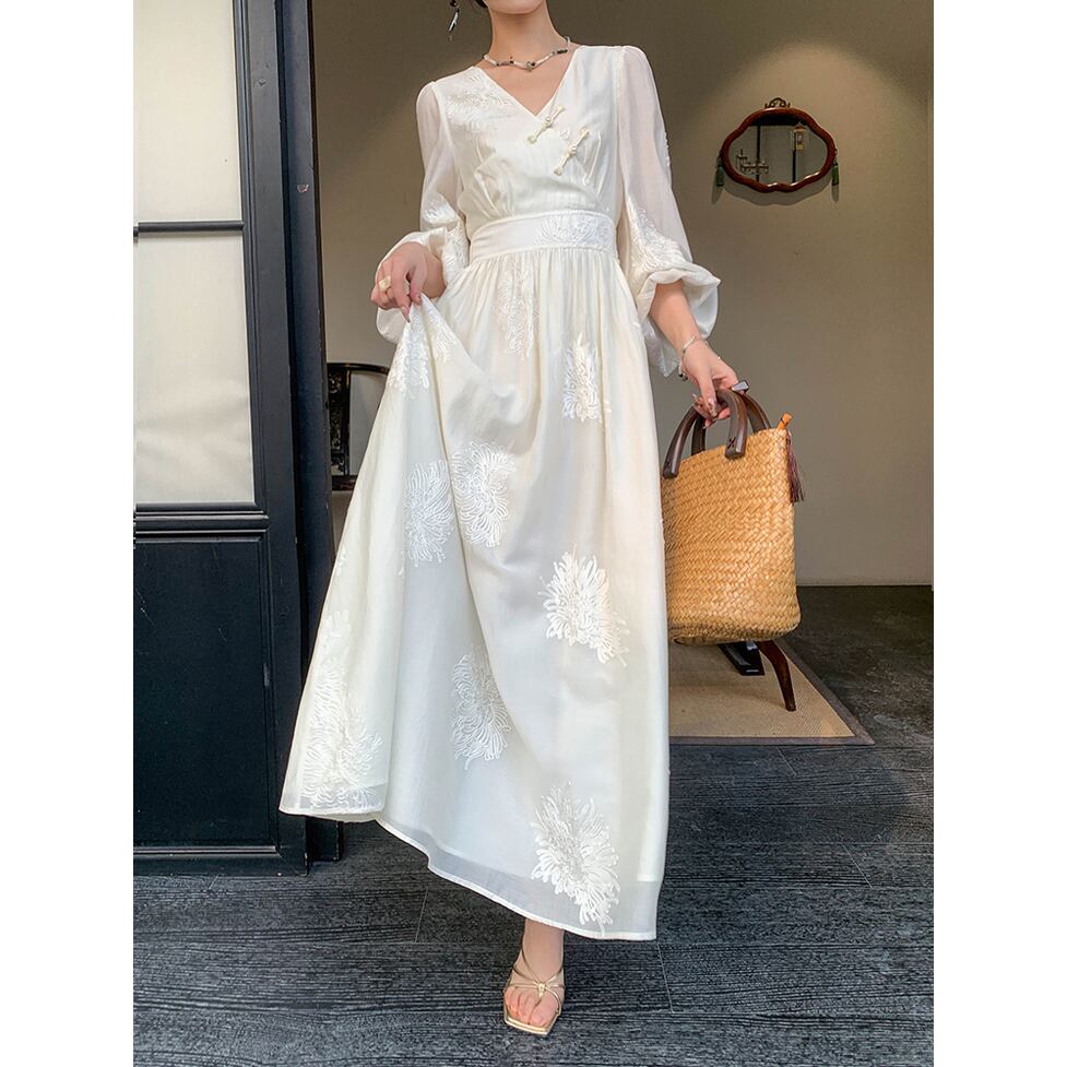 オリエンタル風刺繍ロングワンピース カシュクール刺繍ロングワンピース レディース ワンピース ドレス ドレスワンピース ワンピドレス ロング フレアワンピース ボリューム袖 長袖 バルーン袖 Vネック カシュクール Aライン スリム 細身 フレア シフォン 刺繡 かわいい 大人可愛い きれいめ 上品 おしゃれ レトロ アジアン エスニック こなれ感 ガーリー エレガント デート お出かけ パーティー イベント 女子会 休日 ショッピング 体型カバー インスタ映え フェミニン