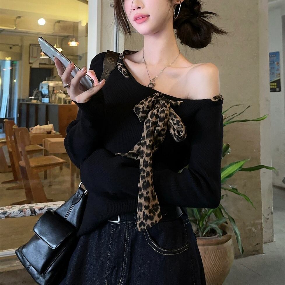 ワンショルダーヒョウ柄リボントップス ワンショルレオパードリボンシャツ レディース トップス シャツ カットソー プルオーバー 長袖 りぼんタイ ワンショルダー リボン スマート スリム 細身 アシンメトリー かわいい 大人可愛い きれいめ カジュアル 上品 おしゃれ レトロ こなれ感 ガーリー エレガント 通勤 通学 デート お出かけ イベント 女子会 休日 ショッピング 体型カバー モテ トレンド インスタ映え ゆったり ワンショルダートップス ヒョウ柄リボントップス フェミニン
