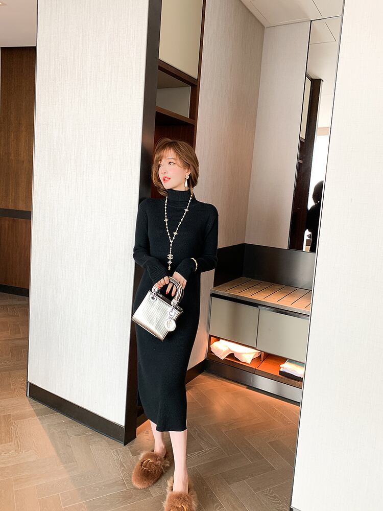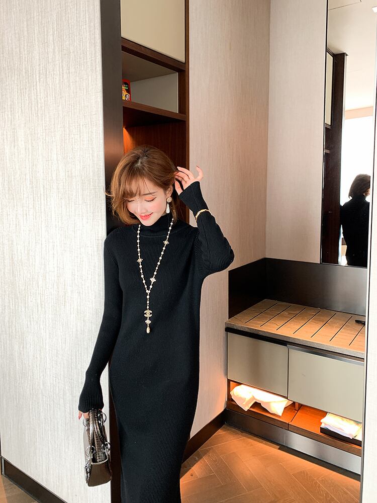 レディース ワンピース ニット プルオーバー 膝丈 ミディアム 長袖 萌袖 タートルネック 着痩せ スリム 細身 ストレート フェミニン サイドスリット リブニット かわいい 大人可愛い きれいめ シンプル カジュアル 上品 おしゃれ こなれ感 抜け感 ベーシック 無地 春 秋 オフィス 通勤 学生 学校 通学 デート お出かけ お泊まり 公園 女子会 休日 高原 ガーデン ショッピング カフェ 重ね着 コーデ 普段使い 着回し レイヤード 定番 S M L XL 2XL ゆったり 黒 ブラック