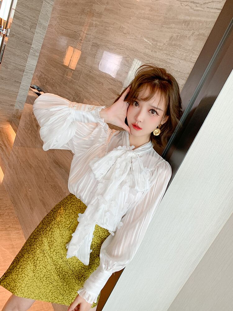 レディース トップス シャツ ブラウス 長袖 ボリューム袖 フリル袖 ボウタイ りぼんタイ 花飾り フェミニン 透け感 シースルー かわいい 大人可愛い きれいめ シンプル カジュアル 上品 おしゃれ こなれ感 ガーリー エレガント フォーマル 抜け感 ストライプ 春 秋 オフィス 通勤 学生 学校 通学 デート お出かけ お泊まり 公園 女子会 休日 ガーデン ショッピング 重ね着 コーデ 普段使い 着回し レイヤード モテ 清楚 S M L XL 2XL 3XL 大きいサイズ ゆったり 白 ホワイト