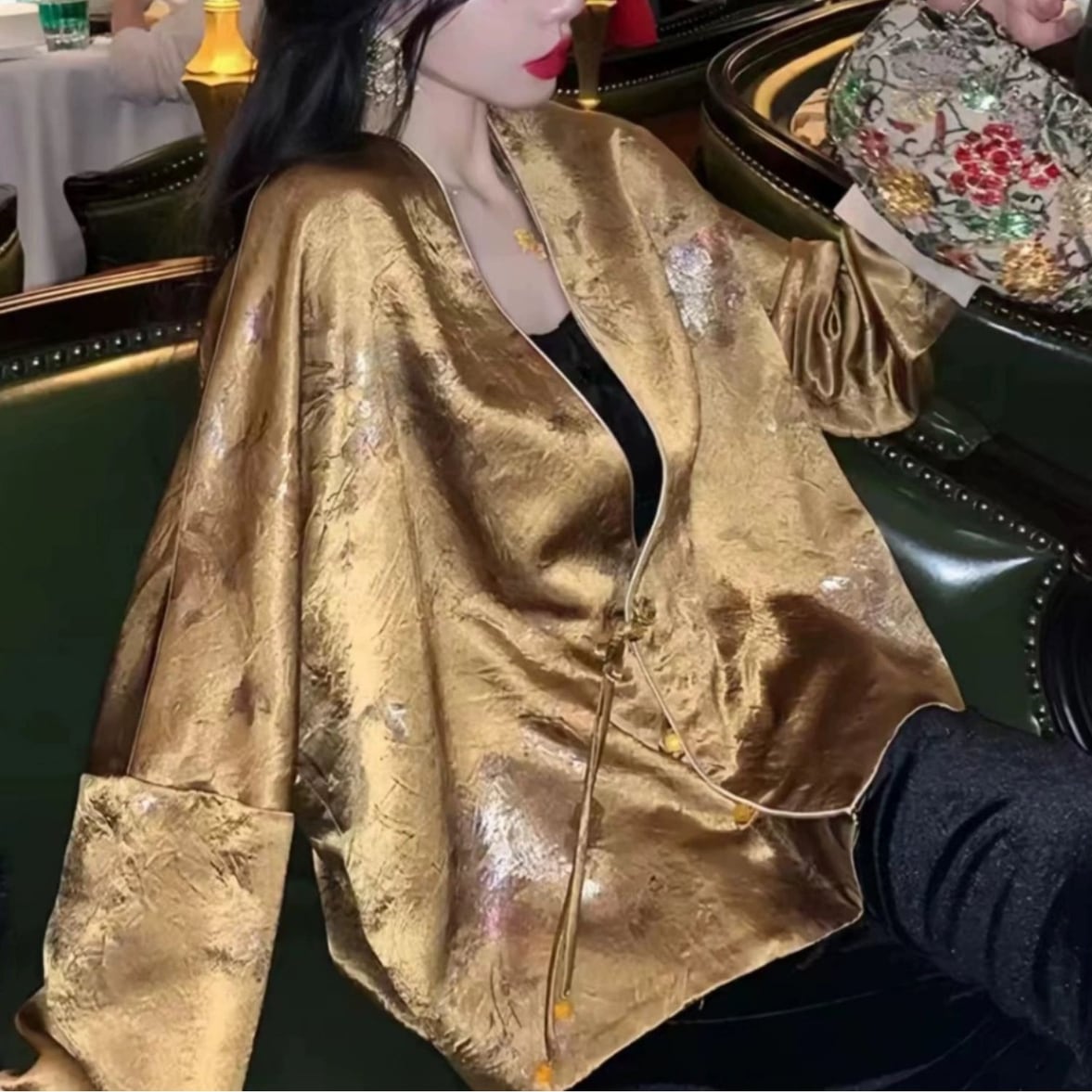 オリエンタルシャツトップス カシュクールシャツジャケット レディース トップス ジャケット 上着 ショート ドロップショルダー 長袖 Vネック カシュクール アシンメトリー オーバーサイズ フレア ワイド 前開き 異国風 刺繡 サテン かわいい 大人可愛い きれいめ カジュアル 上品 おしゃれ かっこいい レトロ エスニック エキゾチック こなれ感 ラフ ガーリー ルーズ 個性的 エレガント キュート デート お出かけ パーティー イベント 女子会 休日 ショッピング フェミニン