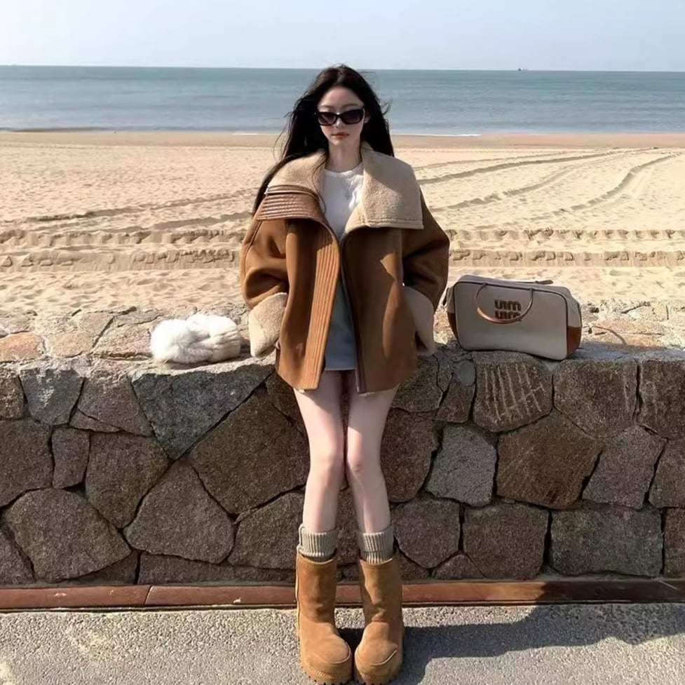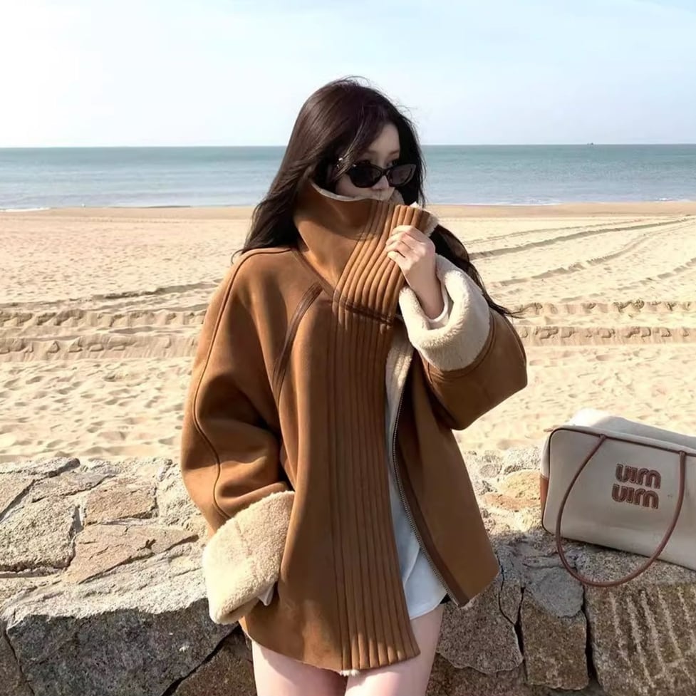 ハイネックショートコート 裏ボアショートコート レディース ジャケット コート アウター ボアコート ムートンコート スタンドカラー タートルネック ハイネック ワイド ショート ジッパー ジップアップ かわいい 大人可愛い きれいめ カジュアル おしゃれ かっこいい レトロ こなれ感 メンズライク マニッシュ ボーイッシュ ガーリー ルーズ クール エレガント かっちり キュート アクティブ ワイルド 秋 冬 通勤 通学 暖かい 防寒 体型カバー インスタ映え ビッグ ゆったり