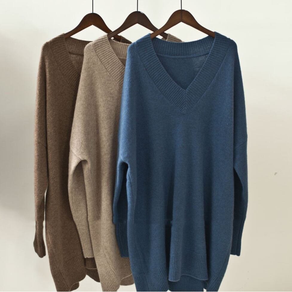 Vネックロングゆるニット Vネックニットワンピース レディース トップス ワンピース ニット セーター ロング ドロップショルダー ラグランスリーブ 長袖 Vネック オーバーサイズ コクーン スリット かわいい 大人可愛い きれいめ シンプル カジュアル 上品 おしゃれ かっこいい レトロ こなれ感 ラフ マニッシュ ガーリー ルーズ クール エレガント キュート 無地 秋 冬 通勤 通学 デート お出かけ 女子会 休日 ショッピング 暖かい 防寒 体型カバー トレンド インスタ映え ゆったり フェミニン