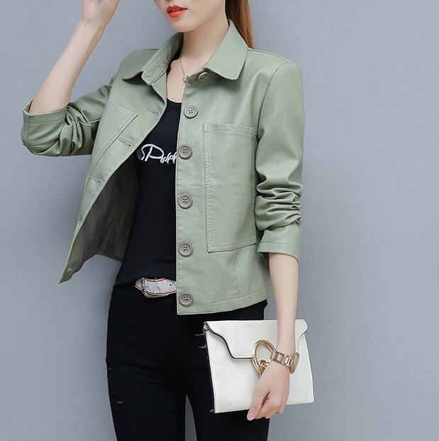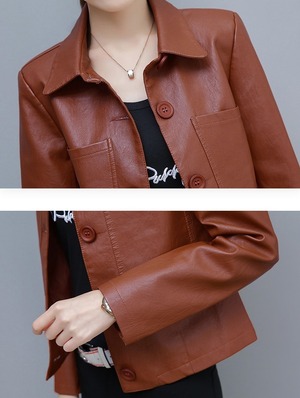ショート丈 フロントボタン レザージャケット レディース トップス ジャケット アウター 上着 ショート 長袖 襟付き 角襟 ポロカラー スリム 細身 ポケット 前開き ボタン レザー PU かわいい 大人可愛い シンプル カジュアル おしゃれ かっこいい こなれ感 クール 無地 春 秋 冬 ママ 通勤 学生 学校 通学 デート お出かけ 旅行 公園 女子会 休日 ツーリング 重ね着 普段使い 着回し M L XL 2XL 3XL 4XL 大きいサイズ 黒 ブラック キャラメル ビーンズグリーン