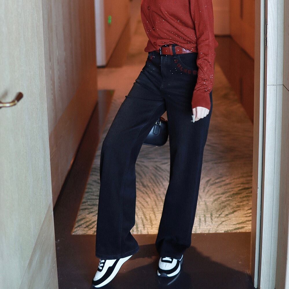 パンツ 韓国風 ハイウエスト ズボン デニム ストレートパンツ 刺繍 ロゴ入り スタッズ付き ストレート ワイド 大人可愛い きれいめ シンプル カジュアル 大人 大人カジュアル 上品 おしゃれ お洒落 かっこいい 大人女子 こなれ感 ラフ クール セクシー モダン スタイリッシュ シック 無地 春 夏 秋 冬 ロングシーズン オールシーズン シーズンレス S M L XL 2XL 3XL サイズ展開 お出かけ 公園デビュー 女子会 休日 高原 ホテル ガーデン デイリー 着回し 普段使い 韓国 韓国系