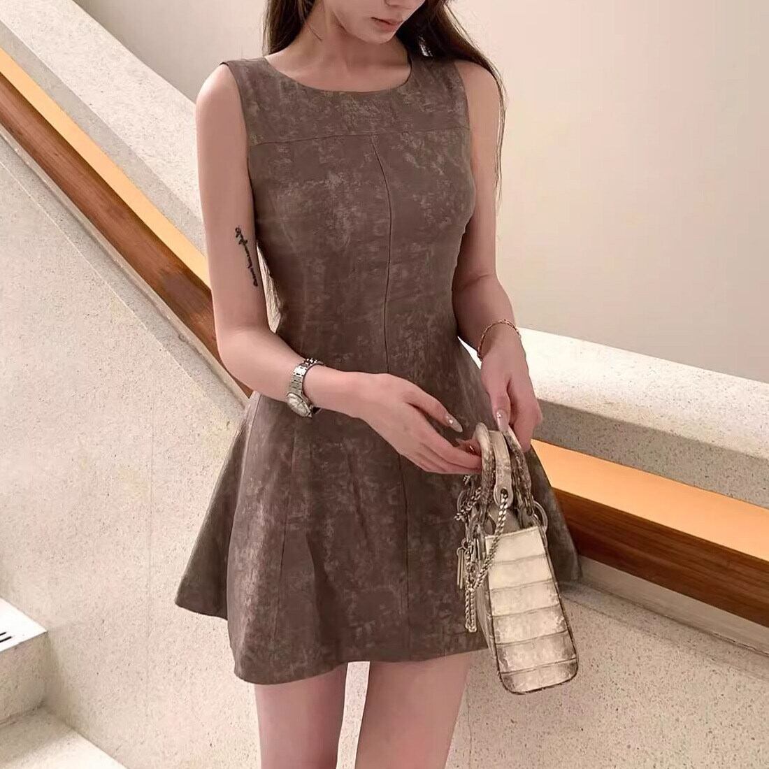 レディース ワンピース ミニワンピース マイクロミニ 袖なし ノースリーブ Uネック フレア スリム 細身 Aライン フェミニン タック かわいい 大人可愛い きれいめ シンプル カジュアル 上品 おしゃれ こなれ感 抜け感 ラブリー キュート ベーシック 無地 春 夏 学生 学校 通学 デート お出かけ お泊まり リゾート 旅行 海 ビーチ 公園 女子会 休日 バカンス 高原 ガーデン ショッピング 合コン コンパ カフェ 美脚 脚長 普段使い 着回し モテ 清楚 定番 S M L 茶色 ブラウン