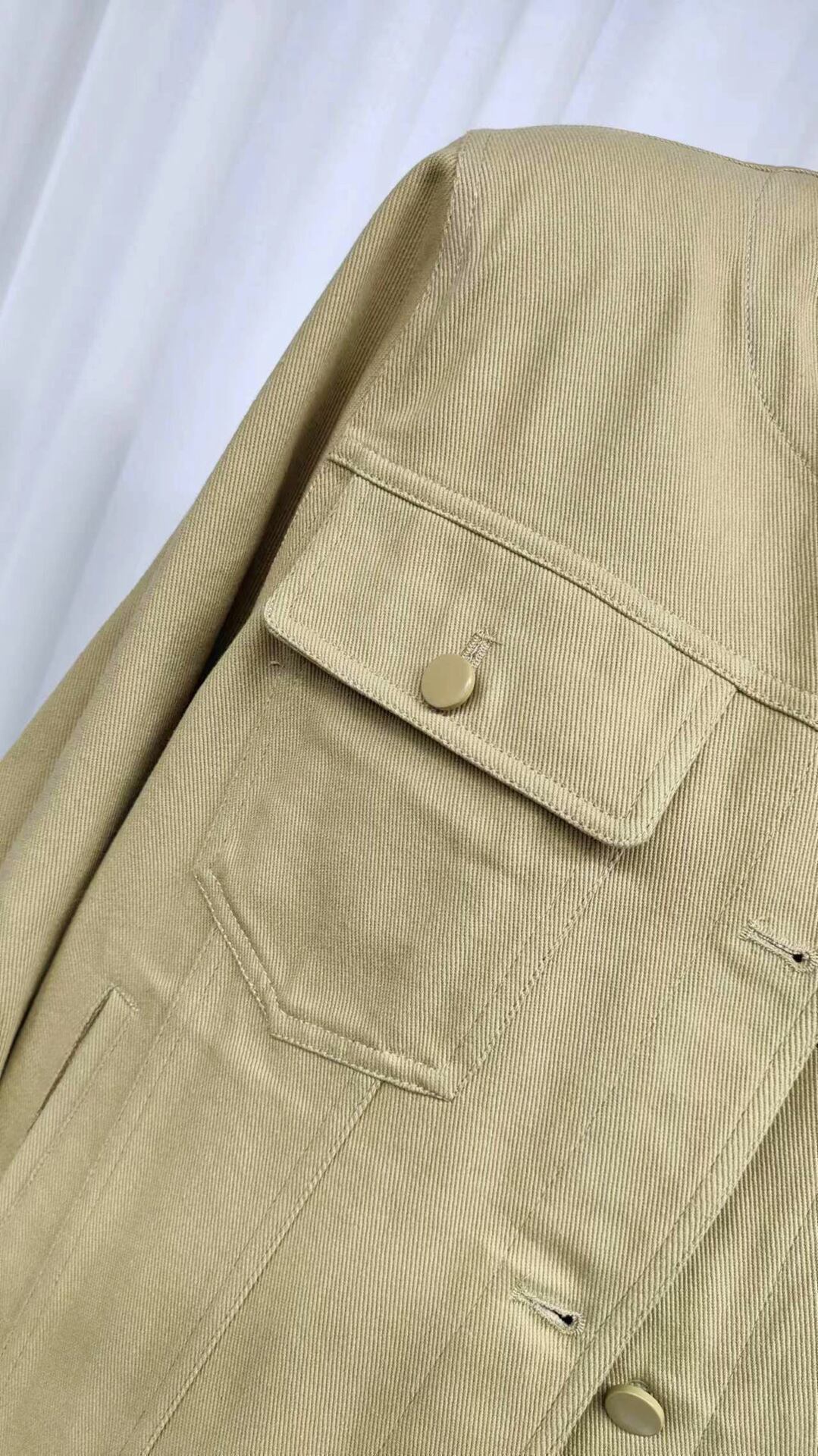 ノーカラー ラウンドネック デニムジャケット レディース トップス ジャケット アウター 上着 羽織 丈長 ミディアム 長袖 襟なし オーバーサイズ ポケット 前開き ボタン デニム カラーデニム かわいい 大人可愛い シンプル カジュアル おしゃれ こなれ感 ルーズ 無地 春 秋 冬 ママ 通勤 学生 学校 通学 デート お出かけ 旅行 ショッピング カフェ 重ね着 体型カバー 普段使い 着回し レイヤード S M ゆったり カーキ ベージュアプリコット