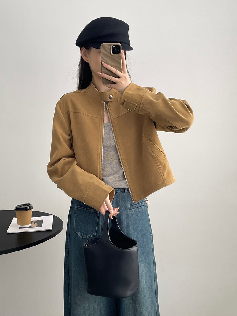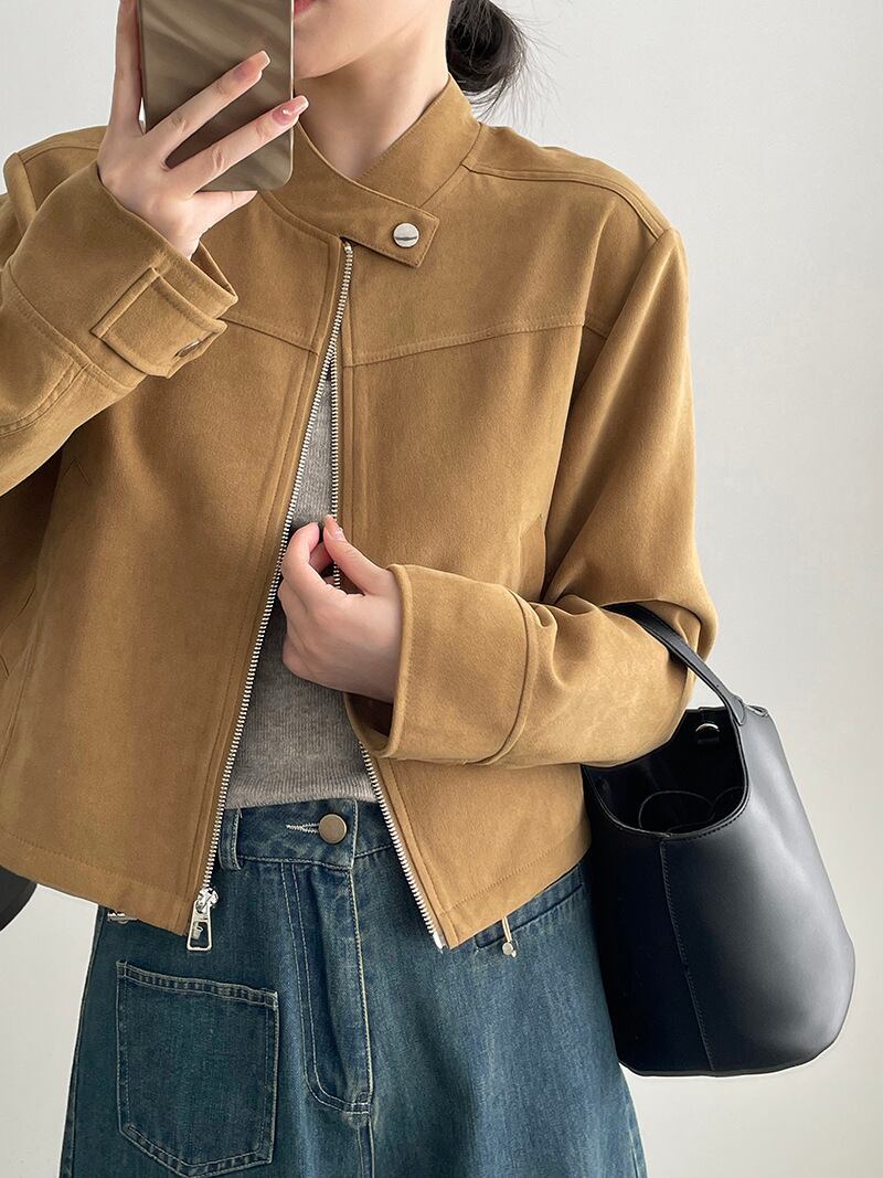 大人可愛いスタイルを叶えるスタンドカラーショート丈ジップアップジャケット!シンプルなデザインながらも、こなれ感抜群で上品さを演出。初秋から春先まで使えるのはもちろん、レイヤードスタイルにもぴったりです。前開きのファスナーとポケット付きで、普段使いから通勤、お出かけまで多彩なシーンで活躍します。